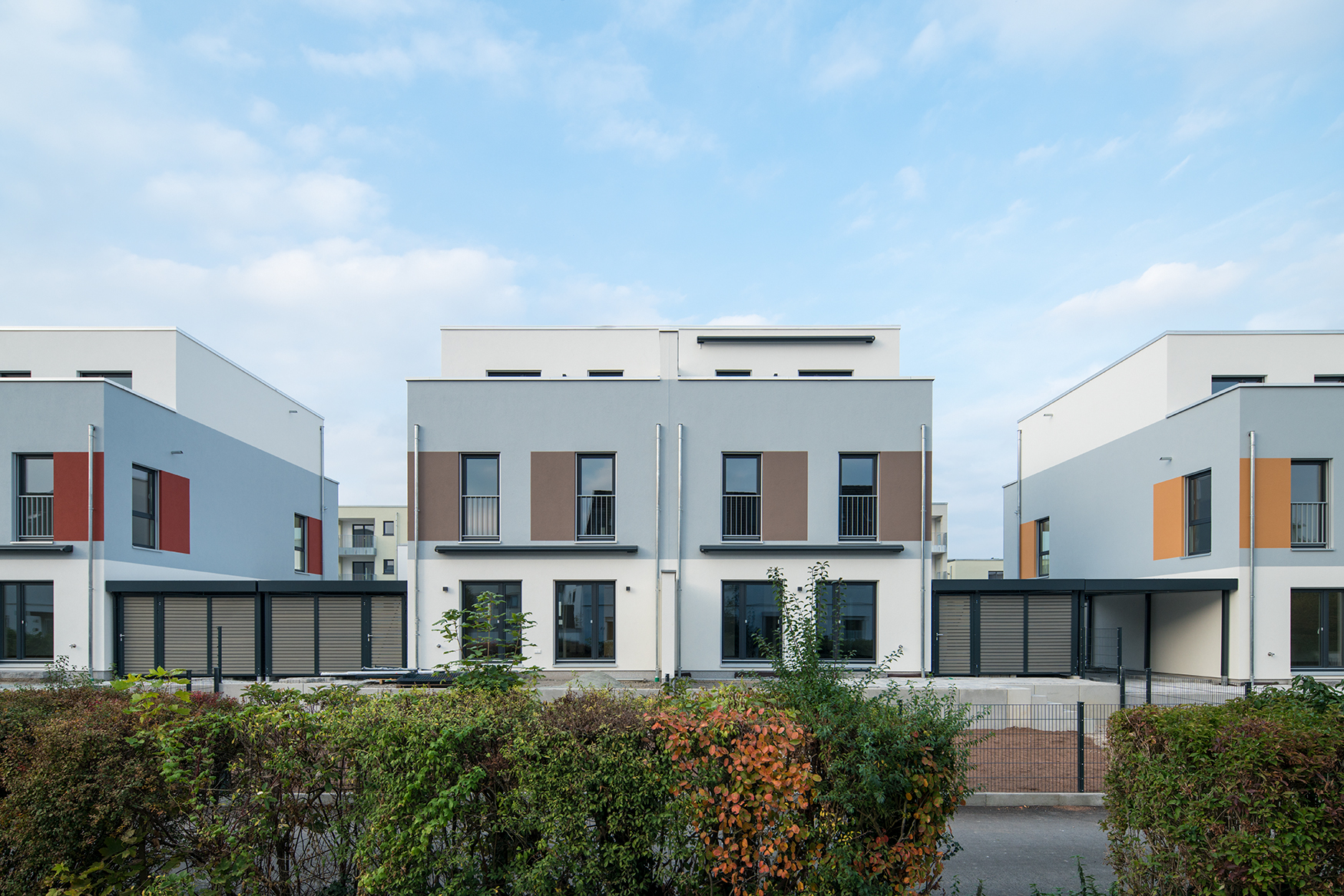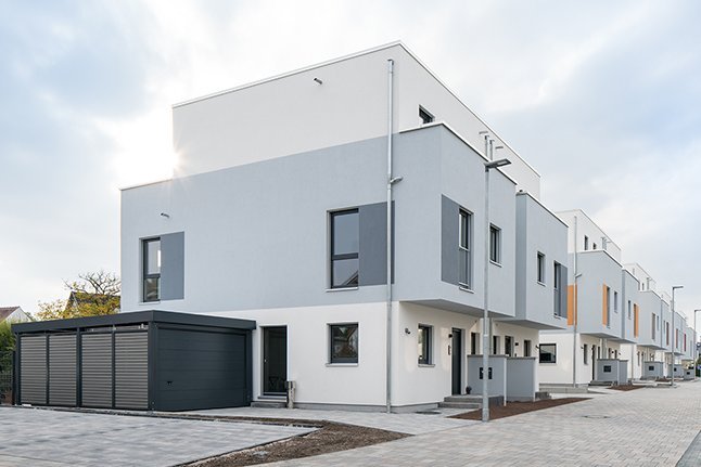 Jede der 10 Doppelhaushälften in Karben wird mit einer Luft-Wasser-Wärmepumpe beheizt und ist als KfW-Effizienzhaus 40 eingestuft. Die Gesamtwohnfläche dieses Projektes beträgt ca. 1.600 m².