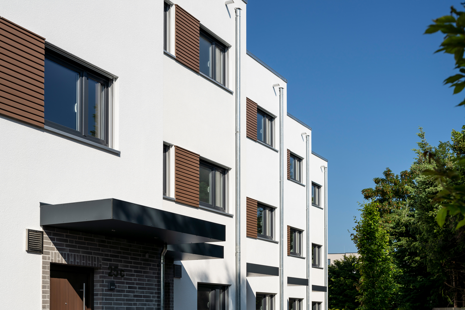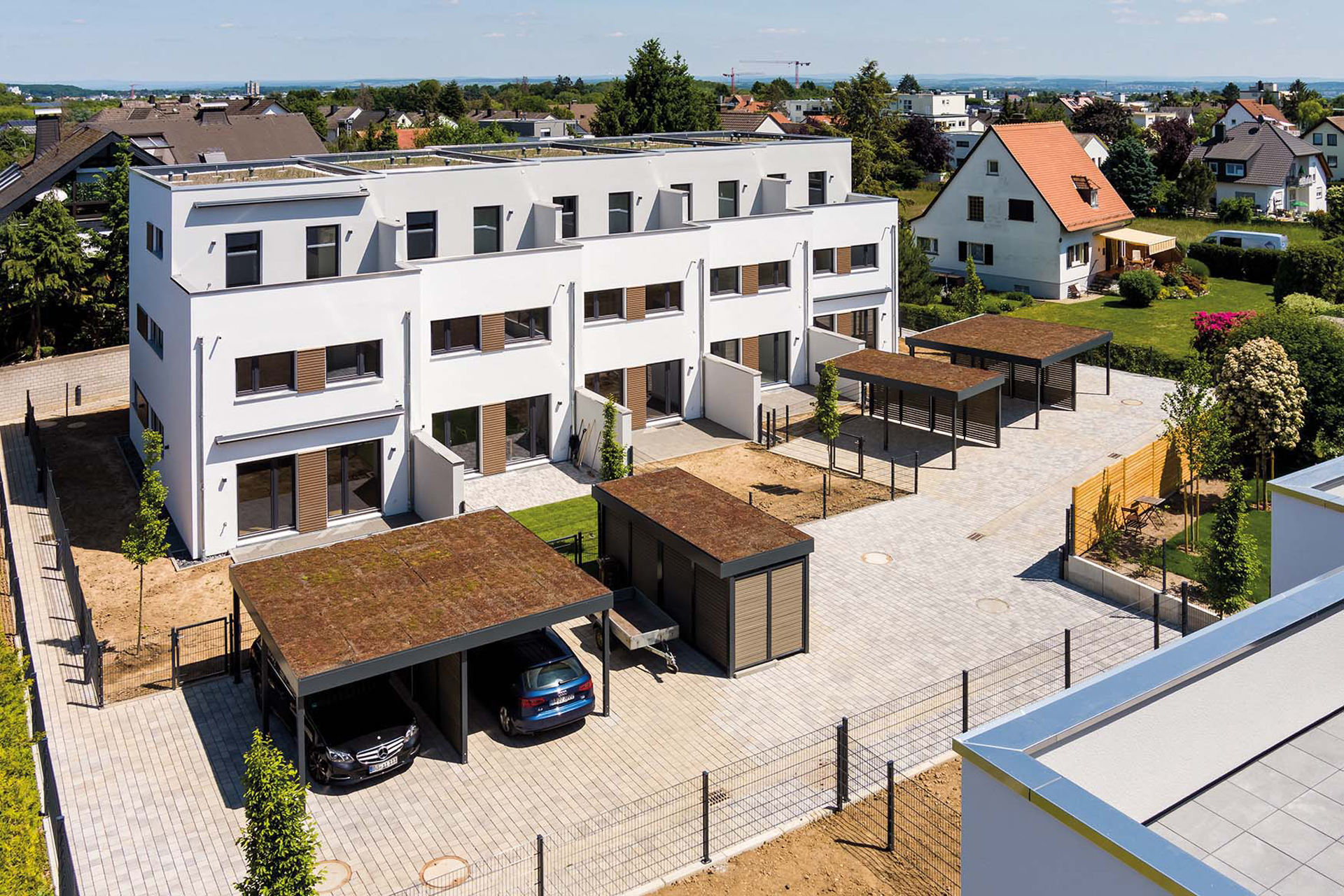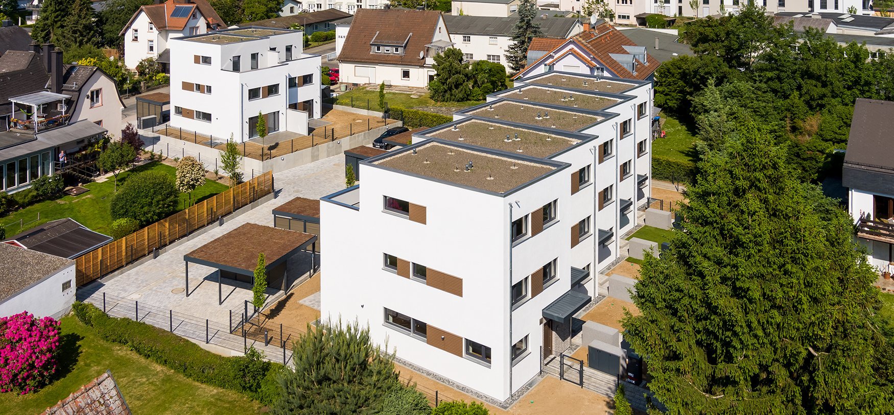 Die Gesamtwohnfläche der 7 Einfamilien-Reihenhäuser beträgt 1.400 m². Im Mai 2020 wurde dieses Projekt fertiggestellt. Jedes Haus verfügt über eine Luft-Wasser-Wärmepumpe und erfüllt den KfW-Effizienzhaus-40-Standard.